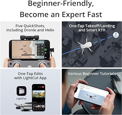 • Seguro y apto para principiantes: DJI Mini 4K admite despegue/aterrizaje con un solo toque, regreso a casa por GPS (RTH) y vuelo estacionario estable, y operación sencilla con un solo toque para principiantes. Los recursos de aprendizaje adicionales en la aplicación te ayudarán a dominar el vuelo rápidamente.